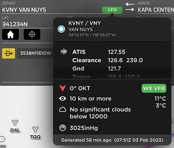 - When viewing a route in the map screen, tap any location and a sidebar will show METAR information for that location (for airfields) or for three nearby locations (for waypoints).