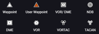 Tap to view user waypoints, visual reference points (VRP) or all waypoints. The symbols used (see below) are the same as used in the web app: